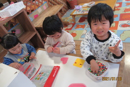 お迎えを待つ間、自分の好きな遊びをお友達と楽しんでいます。