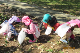 どんぐりや、まつぼっくりなど秋ならではの自然に触れ、感じることができ子ども達もとても喜んでいました。