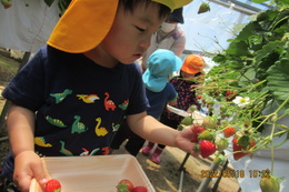 子ども達は上手に赤色の苺を取り、楽しんでいました。
