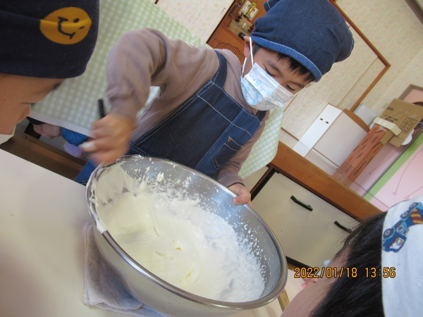 また、未満児さんも食べるなり「このクリーム、ケーキのクリームより美味しい!!」と喜んでいました!(^^)!